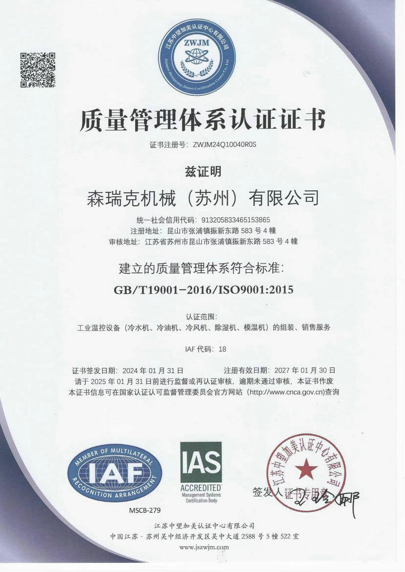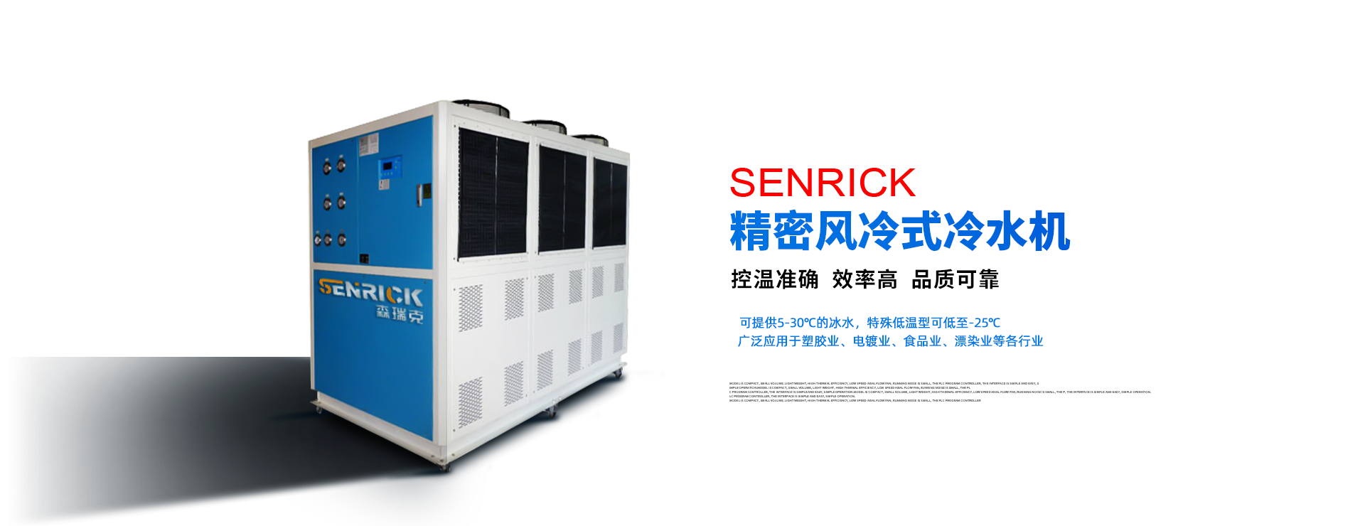 森瑞克機(jī)械(蘇州)有限公司(簡稱:SENRICK)是一家中外合作性企業(yè),引進(jìn)技術(shù),專注于工業(yè)制冷設(shè)備,工業(yè)溫控設(shè)備,非標(biāo)制冷設(shè)備,集激光,化工,真空設(shè)備輔機(jī)等集研發(fā)、生產(chǎn)、銷售、服務(wù)于一體的的現(xiàn)代化科技企業(yè)。公司擁有完善的制造設(shè)備,先進(jìn)的檢測(cè)系統(tǒng),獨(dú)立的加工、生產(chǎn)工藝,一支開拓創(chuàng)新專業(yè)有素的技術(shù)人才團(tuán)隊(duì),以及全面的質(zhì)量控制體系,為產(chǎn)品質(zhì)量的不斷優(yōu)化提供了強(qiáng)大的保障,以確保滿足不同市場(chǎng)的各種需求。經(jīng)過多年的努力企業(yè)相繼研發(fā)生產(chǎn)出了工業(yè)冷水機(jī),工業(yè)冷風(fēng)機(jī),工業(yè)冷油機(jī),工業(yè)機(jī),低溫冷水機(jī),低溫冷風(fēng)機(jī),低溫冷油機(jī),螺桿式冷水機(jī)...